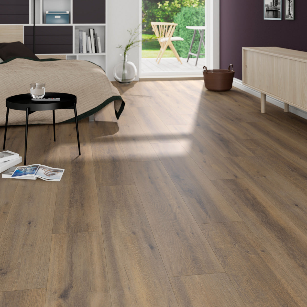 Laminatgolv Oak Lodge 8 mm – djupbrun ek med naturlig variation